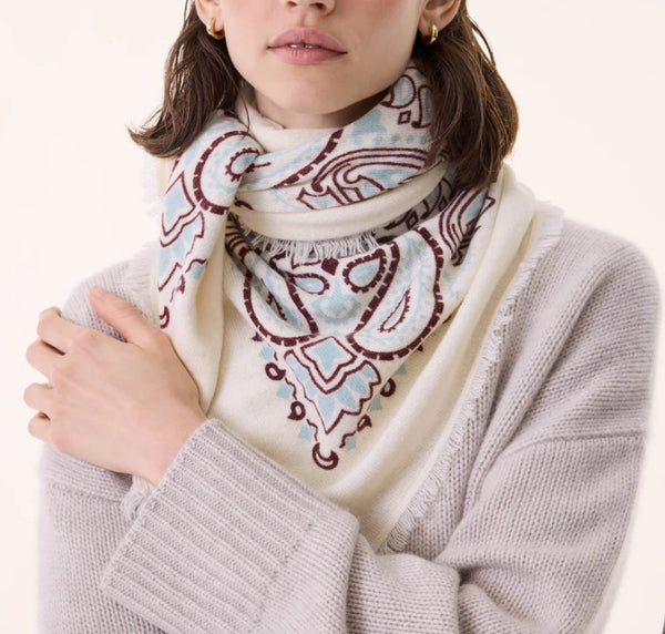Cashmere Bandana Scarf White Bordeaux Sienna