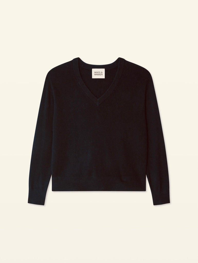 The best relaxed-yet-polished sweater, our Cashmere V Neck is a wardrobe staple that you'll love to live in. We redesigned this classic style with even more cashmere to achieve a relaxed fit, and added a center-back rib detail to enhance its styling power. It's spun from 100% responsibly sourced Mongolian cashmere in a classic weight for year-round wear and features a flattering V-neckline and neatly ribbed trim. The minimal style will make a great pairing with a high-waisted skirt or wide-leg jean.