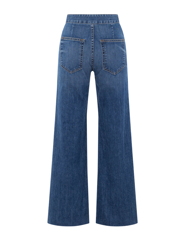 This cropped version of the Brighton Wide Leg gives a fresh feel to a fan favorite silhouette. The Daytona wash is a vintage-inspired light blue with worn-in fading and whiskering in our signature Japanese stretch denim.