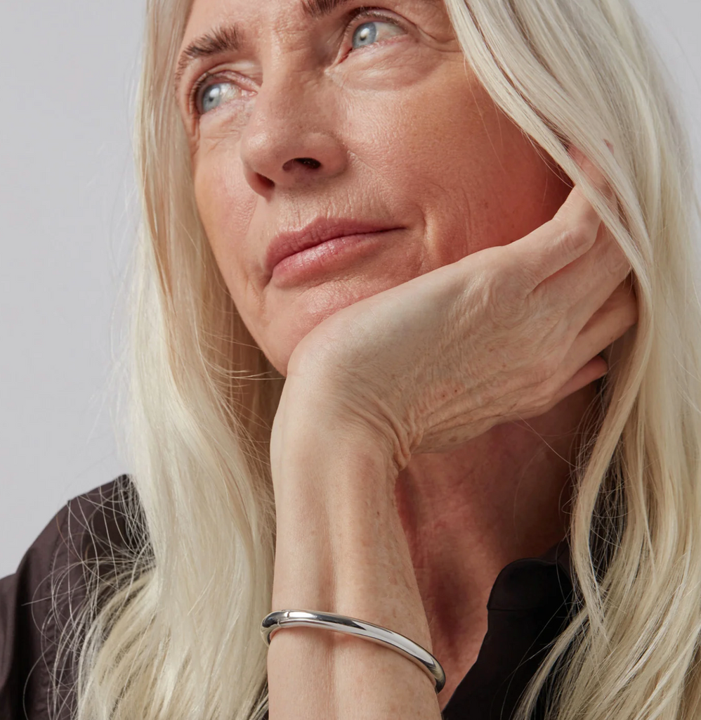 Clients say this bangle fits perfectly on smaller wrists with a comfortable oval shape. Some note the clasp opens easily, though most find it secure. Many reviews mention its versatility for stacking or wearing alone. The piece has a substantial feel while remaining lightweight.