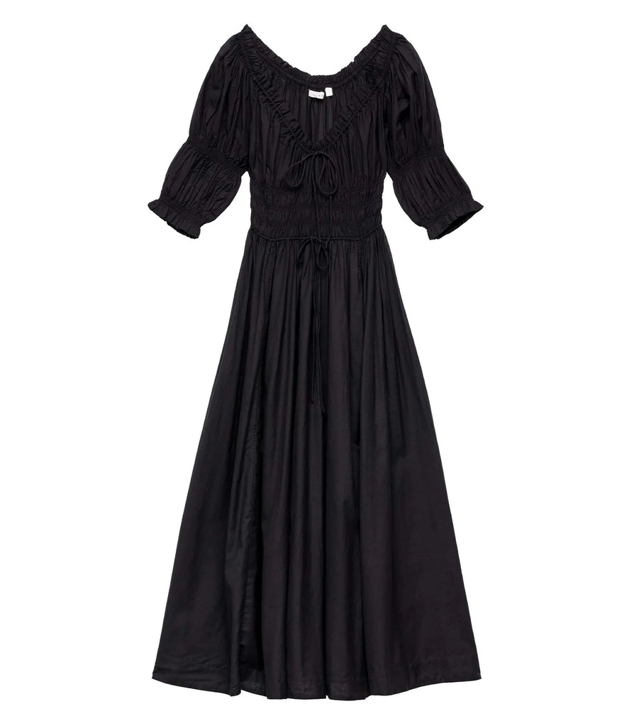 In a soft, lightweight blend of organic cotton voile and viscose, our beloved Ischia Dress—a Favorite Character that first made its debut in Spring 2021—features double-puffed sleeves and a scoop neckline adorned with petite ruffles and a functional center tie. A smocked bodice with an adjustable waist tie gives way to an ankle-grazing A-line skirt.