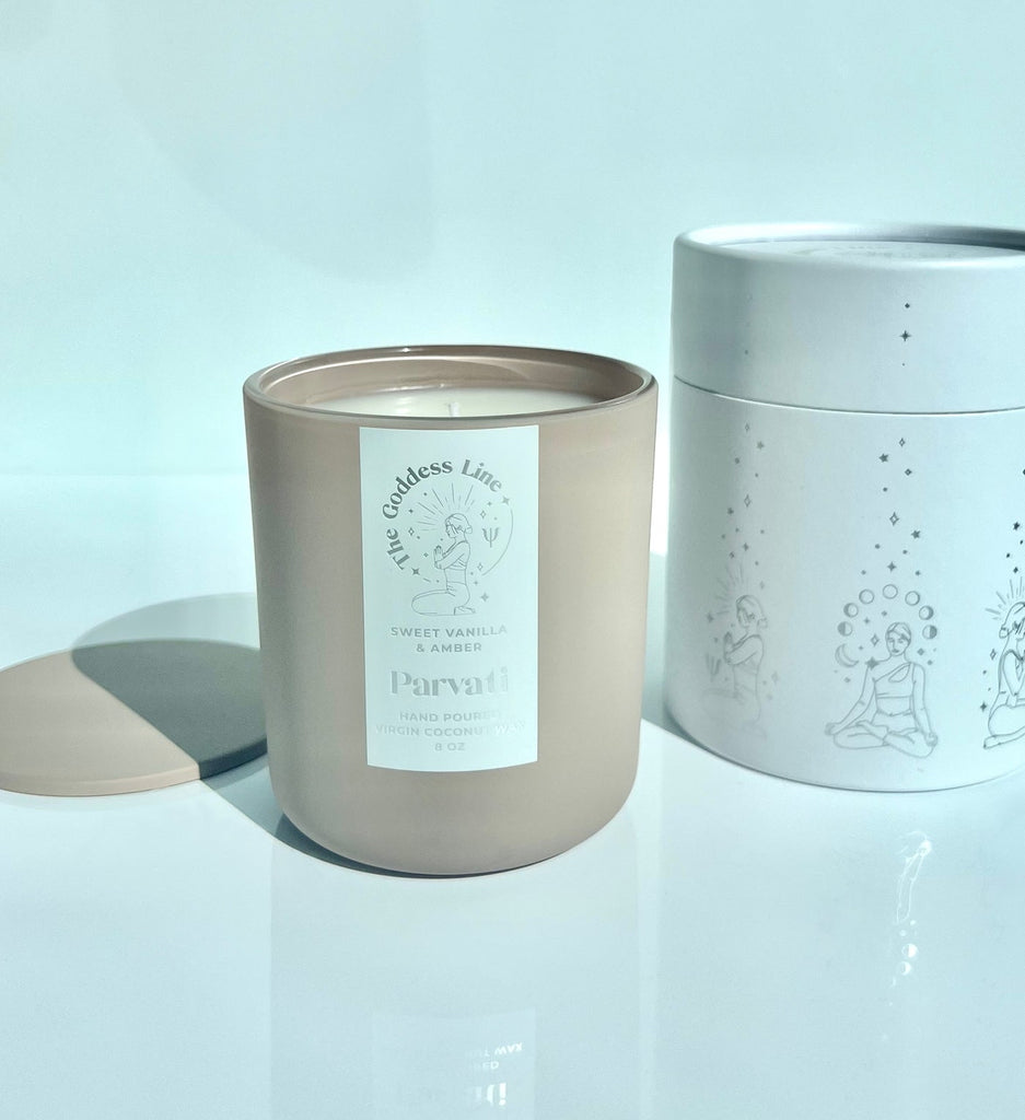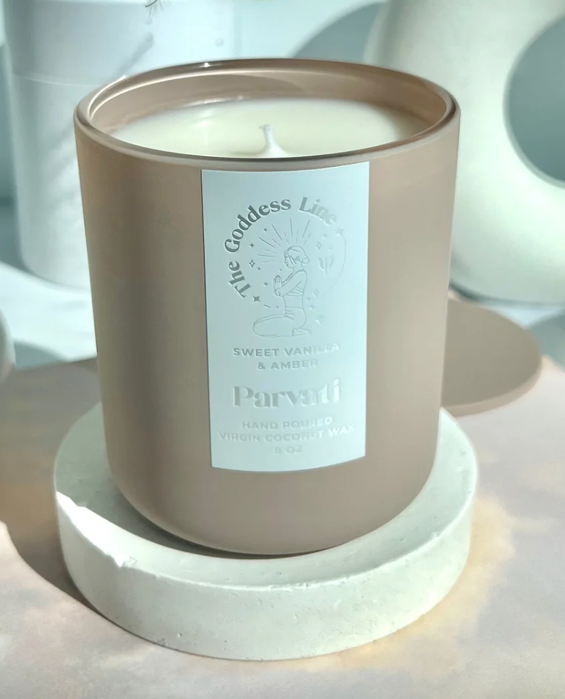 With notes of vanilla and amber, PARVATI is inviting, sensual and sweet. This 8 oz. candle is hand-poured in NYC with a virgin coconut wax (Gluten Free, Cruelty-Free, Vegan, Carcinogen-Free, Toxic-Free, Mutagen-Free, Phthalate-Free), fragrance and a clean burning cotton wick.