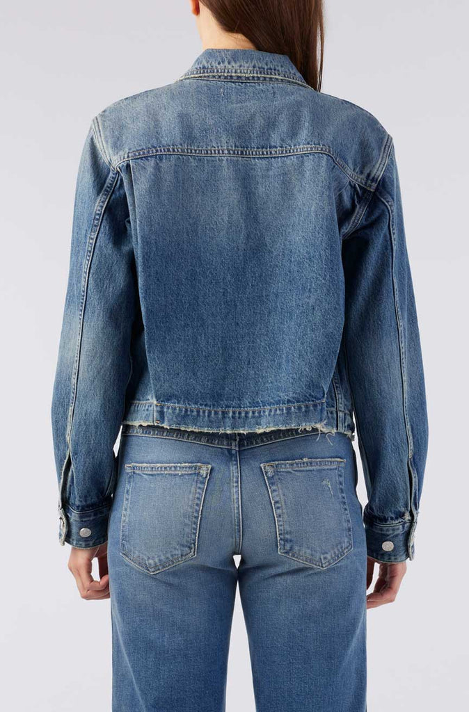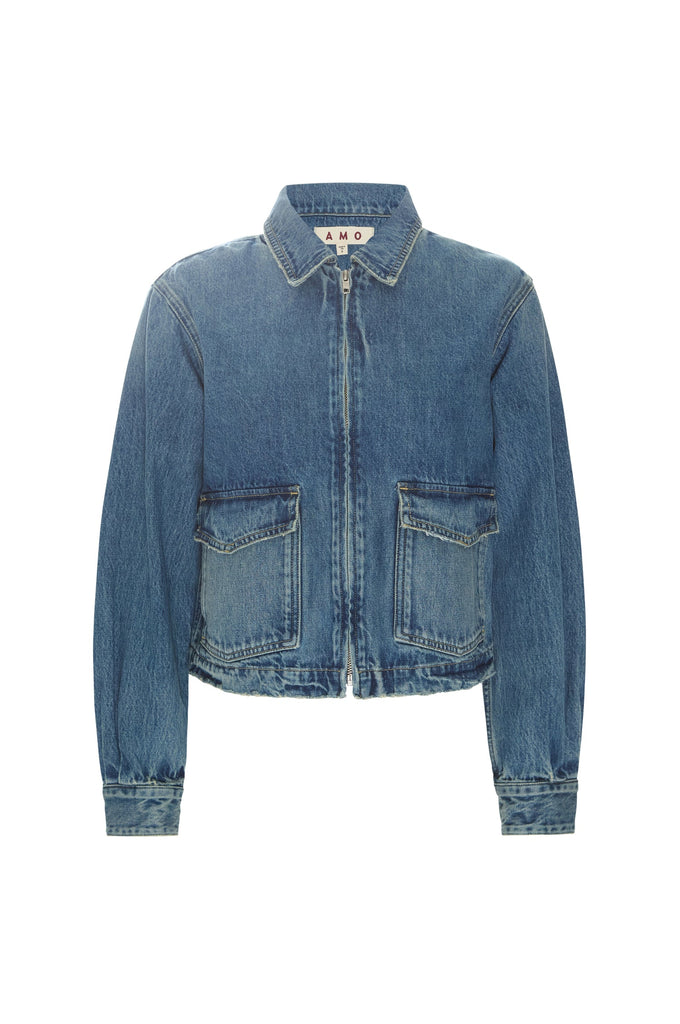 Featuring a dropped shoulder and boxy fit for a relaxed, modern look, this jacket offers both style and functionality. The front patch pockets add practical charm, while the back pleats introduce a feminine design element. Perfect for layering. Zip front.