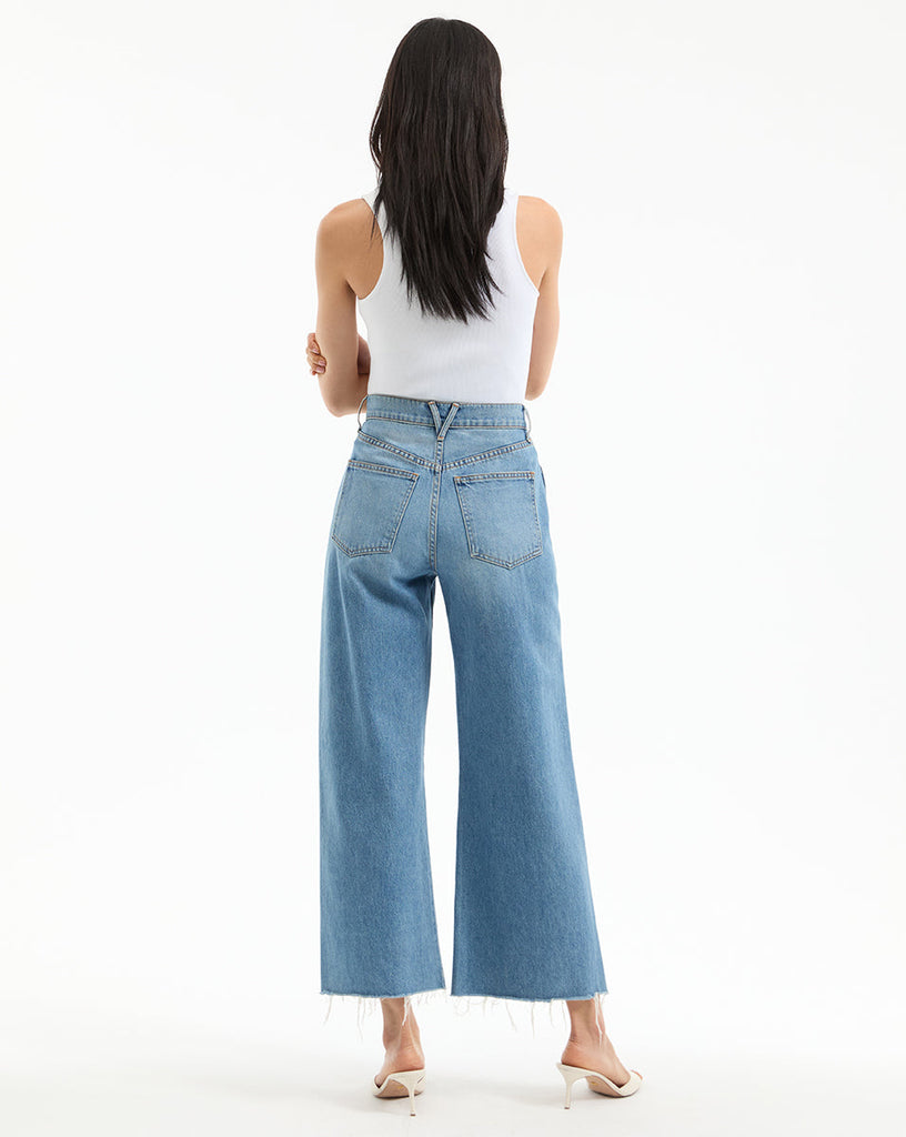 Meet the Taylor, our high-rise, wide-leg jean—now with a cropped hem to better showcase shoes. Made in LA from 100% non-stretch premium Italian cotton, this VB favorite will be your new versatile go-to. Style with a tee and flats for day; dress it up with a printed top and heels for nights out.