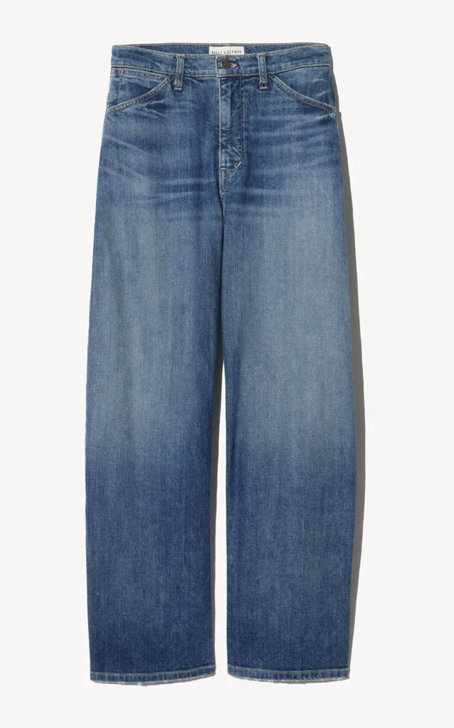 A Nili Lotan best seller we can never keep in stock. Curved silhouette. Belt loops. Front slant pockets. Coin pocket detail. Zip fly. Shank closure. Back patch pockets with topstitching.