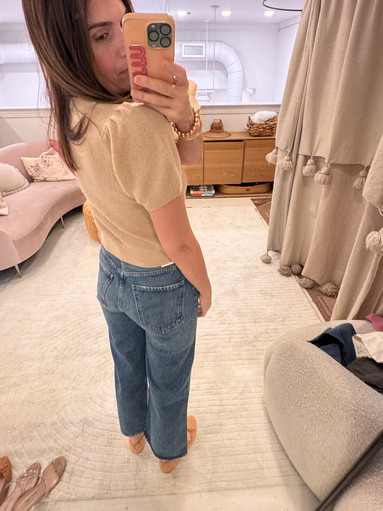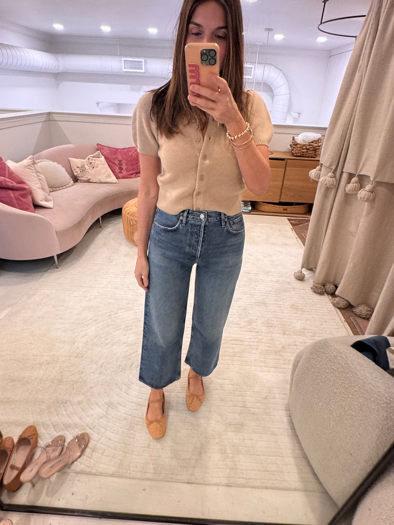AGOLDE's 'Ren' jeans will soon become your go-to pair for casual days. Made from recycled cotton, they have a high-rise waist and cropped wide legs. Half-tuck a tee into