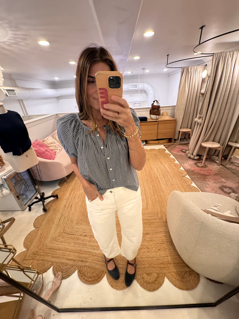 A Nili Lotan best seller we can never keep in stock. Curved silhouette. Belt loops. Front slant pockets. Coin pocket detail. Zip fly. Shank closure. Back patch pockets with topstitching.