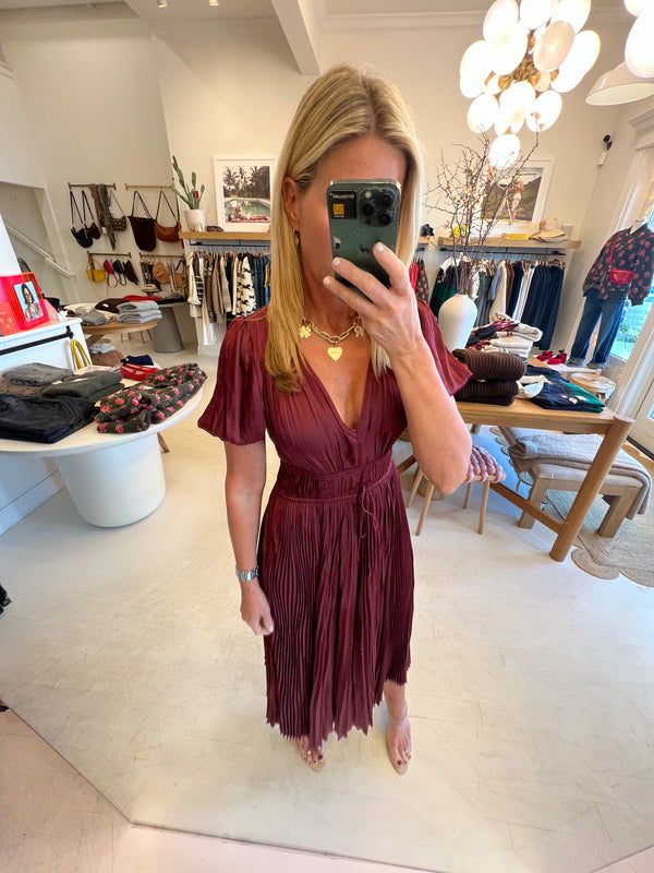 Mariam Silk Bias Cut Flutter Sleeve Dress