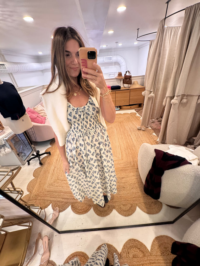 The  Emmaretta dress from Doen is made from certified organic cotton-voile and has a shirred bodice with slim, adjustable ties. The ruffled straps and floaty skirt create nice dimension.