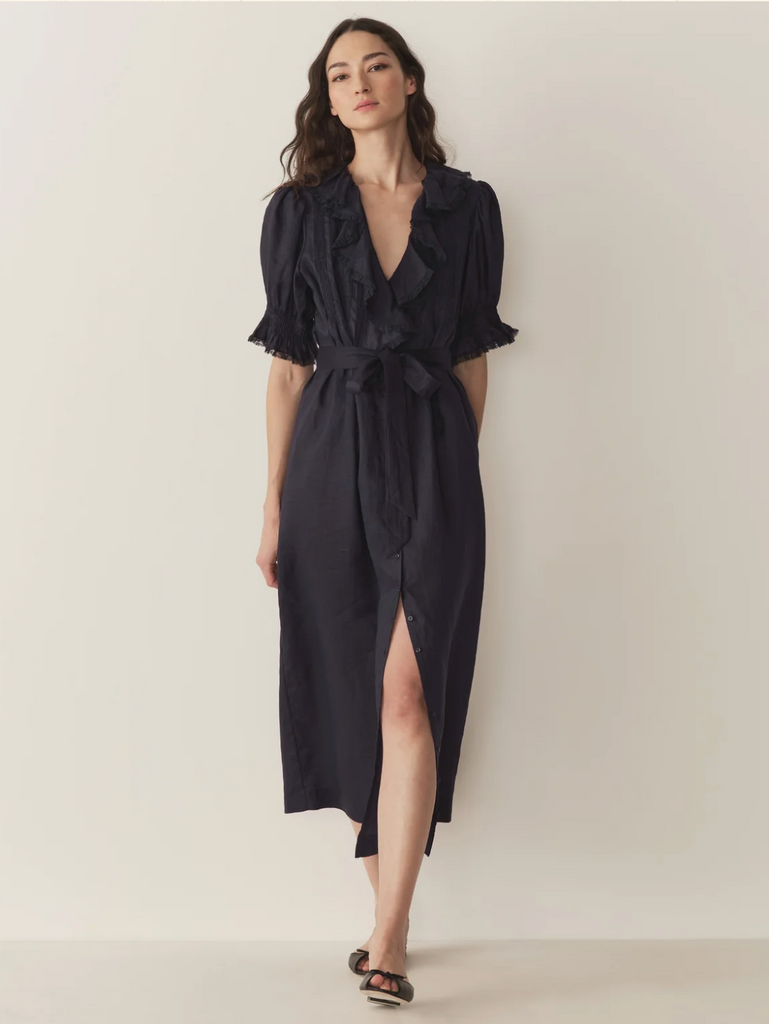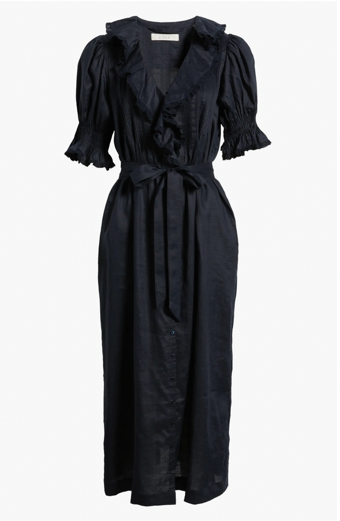 If you are going to have One Doen dress in your closet.... this is THE ONE. A perfect blend of sexy and sweet, a cascade of ruffles, crisp pintucks and playful puff sleeves. This midi dress has a sense of movement and charm. Outlined with lace trim and hugged by a removable belt, it transitions seamlessly from polished days to carefree nights.
