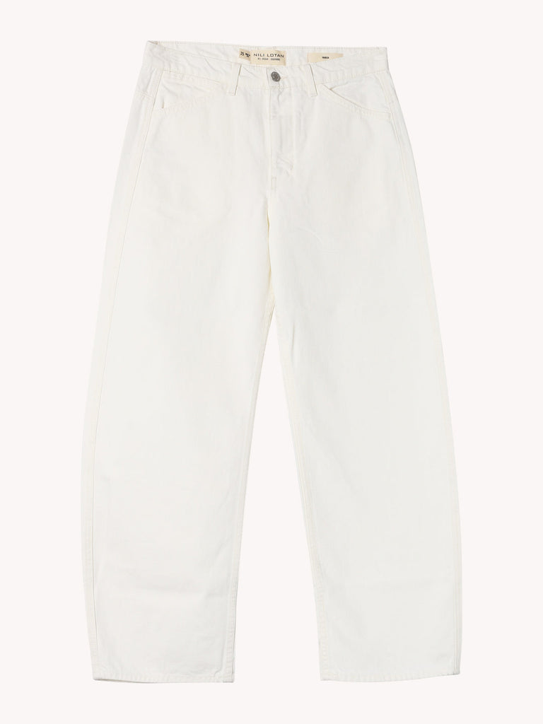 A Nili Lotan best seller we can never keep in stock. Curved silhouette. Belt loops. Front slant pockets. Coin pocket detail. Zip fly. Shank closure. Back patch pockets with topstitching.