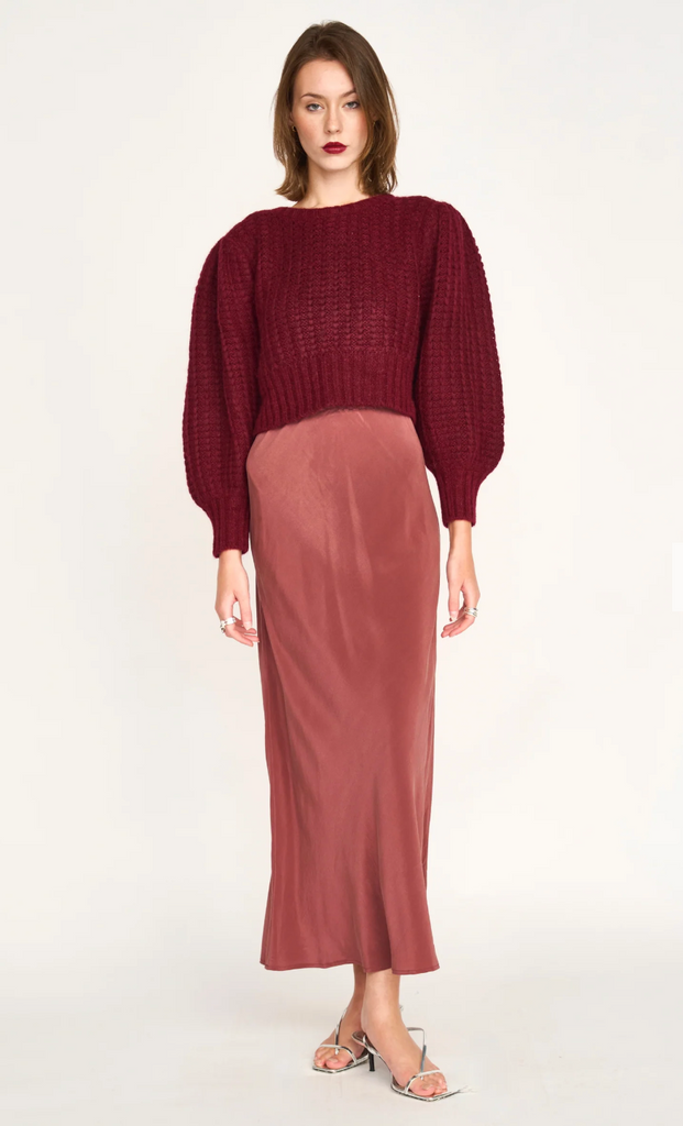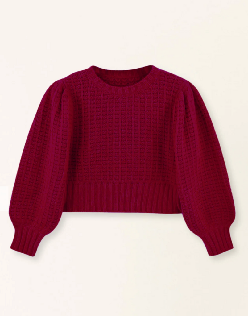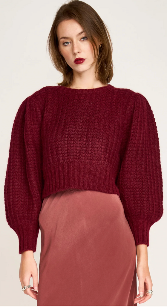 Valmorel Puff Sleeve Pullover in Black Cherry