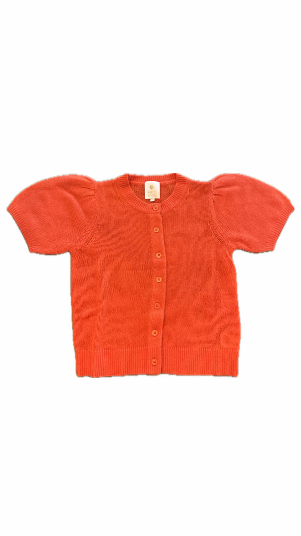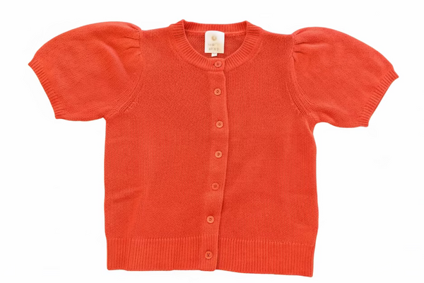 WS Cashmere Puff Short Sleeve Cardigan Poppy