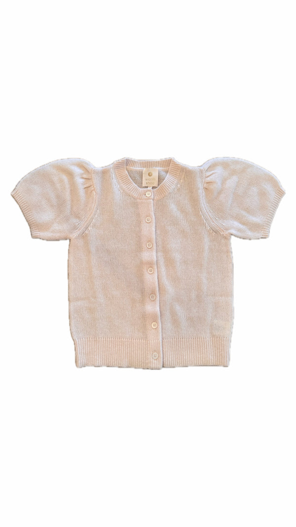WS Cashmere Short Puff Sleeve Cardigan Pale Pink