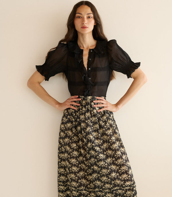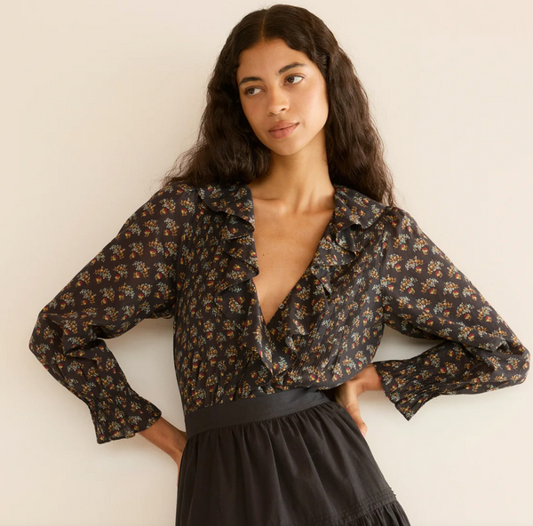 VALMOREL PUFF SLEEVE PULLOVER IN BLACK CHERRY