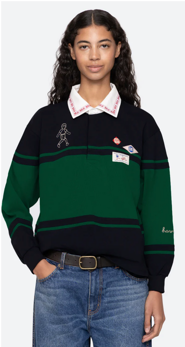 Spring Lake Hand Embroidered Sweatshirt Navy