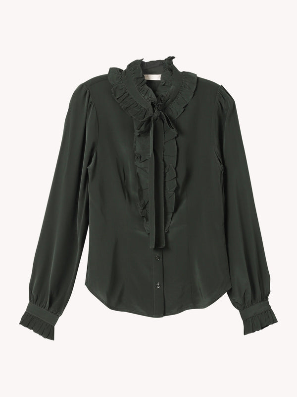 Catroux Silk Long Sleeve Button Front Blouse Cypress