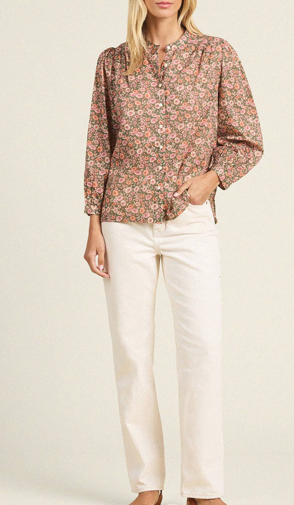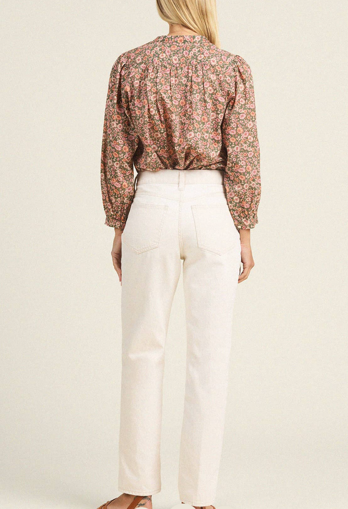 The Clara Blouse by Trovata is a button-front update to our favorite Bailey Blouse with billowy shoulder gathers, a clean standing collar and bracelet-length buttoned sleeves. Includes our signature back detail with a gathered waist tab. Shown here in Marigold Mistral and made from our cotton voile.