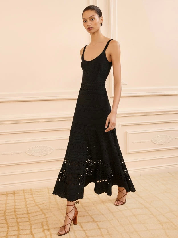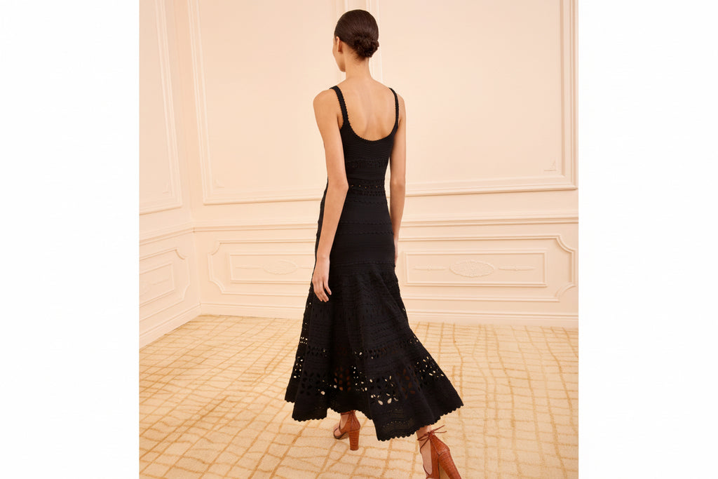 Arriving in Look 47 on the SS26 Runway, the Annisa Skirt elegantly reveals and conceals, spun from a compact knit enlivened with geometric eyelet embroidery. This midi skirt is finished with rows of delicately scalloped ruffles and arrives in an uplifting shade of Peony pink.
