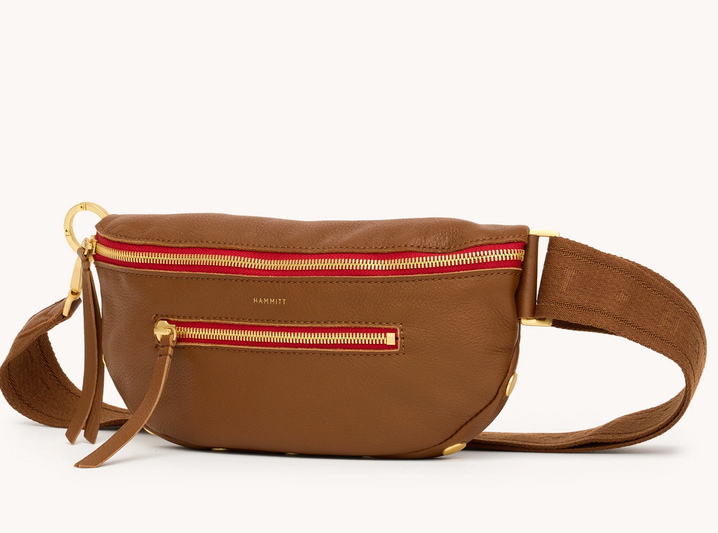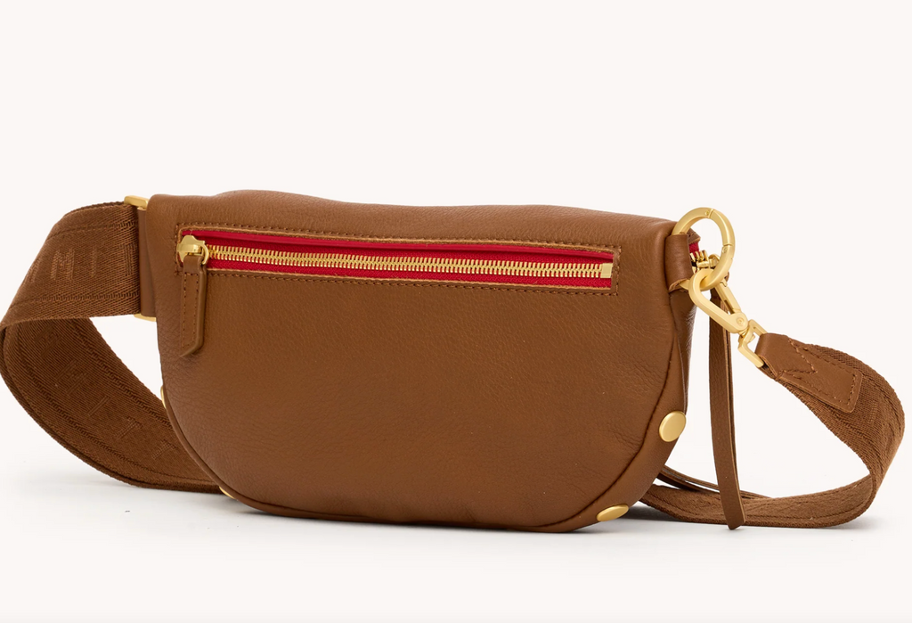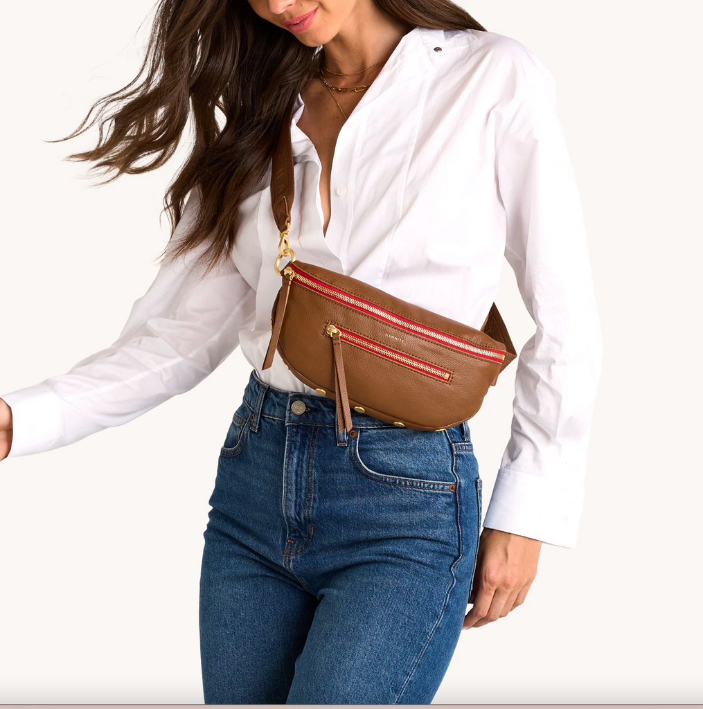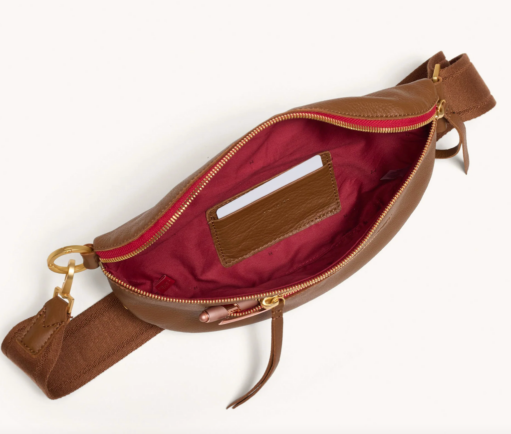 This larger take on our most popular bag of 2023 has all the space you've been dreaming of, with a trendy shape and room for even more essentials. Plus, its long strap allows you to truly wear this style as a low-slung crossbody, in addition to over your chest. Crafted with classic black pebbled leather with our best selling brushed gold hardware and signature red zipper. Our favorite update to the belt bag / fanny pack look, this crossbody bag can be worn as a sling so you can go hands-free.