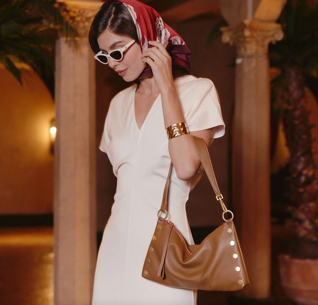 with a soft pebbled leather with a hint of shine featuring a warm medium brown hue