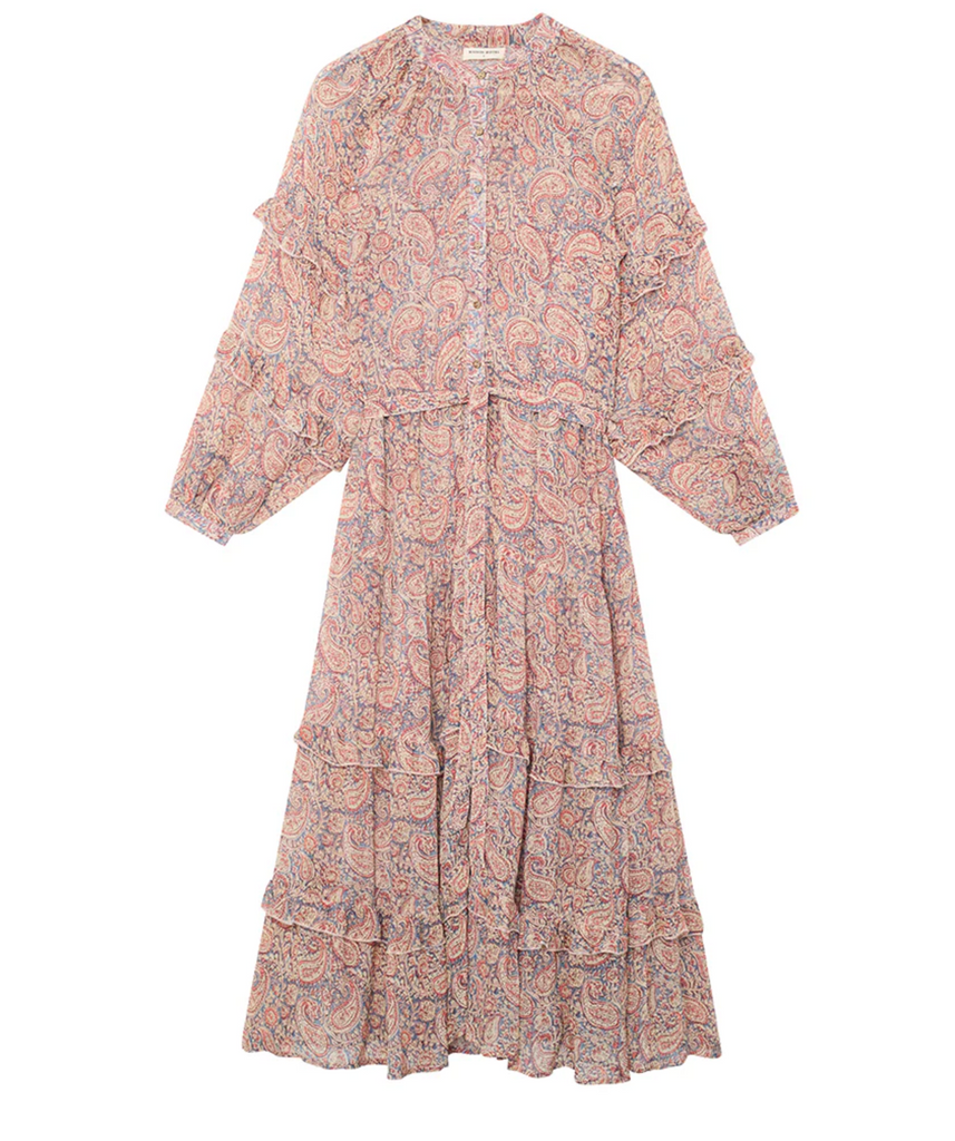 Romantic and statement-making, the Maison Hotel Paquita Srinagar Dress in Wild Dust is a flowing maxi dress with an all-over paisley print in warm, dusty tones. Finished with beautiful ruffle detailing and a button-through front, it’s an easy piece that brings instant impact.
